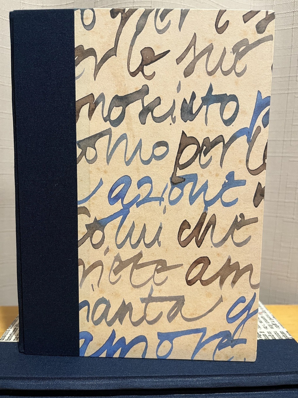 Carnet pamphlet avec une couverture rigide en carton, recouvert de toile et papier décoratif.