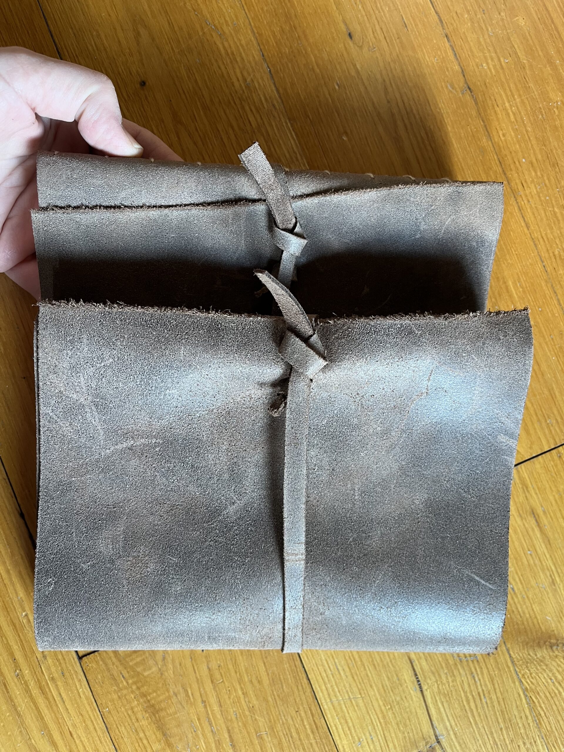 Le carnet se fermé à l’aide d’un lien en cuir blanc.