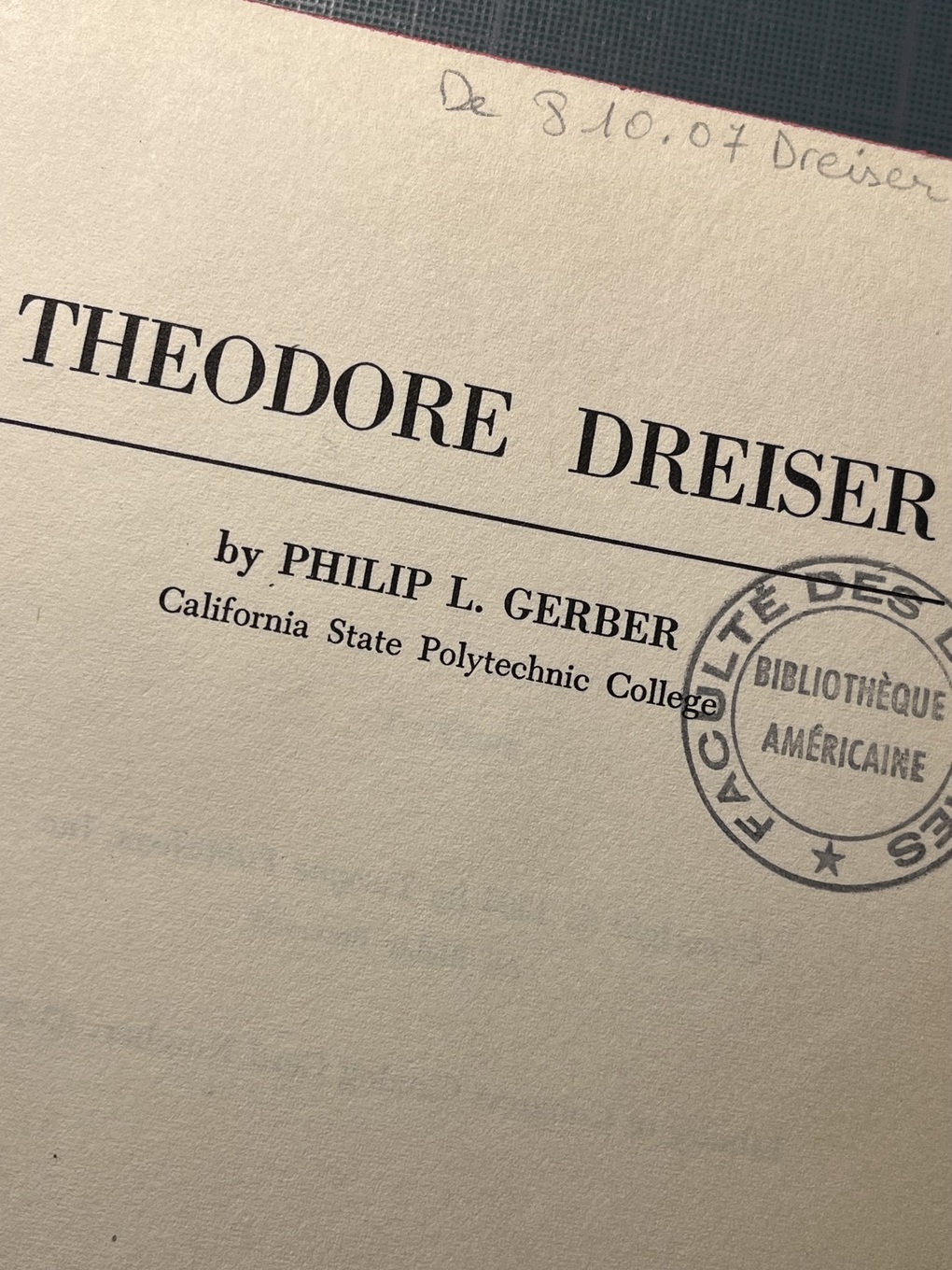 Philip L. GERBER – Theodore DREISER, livre surcyclé